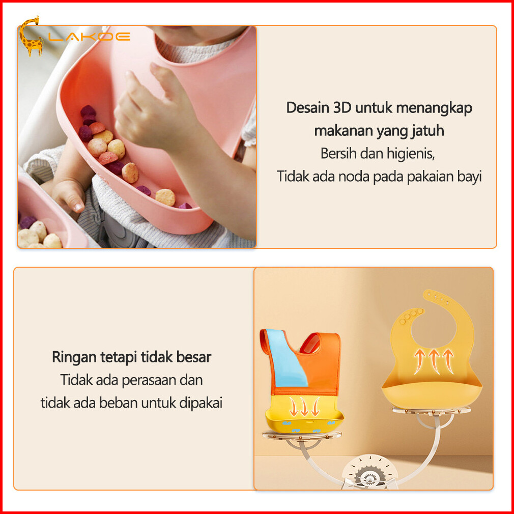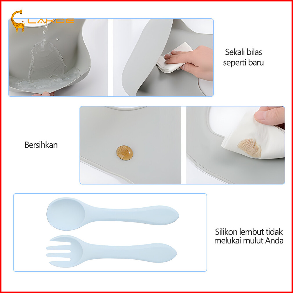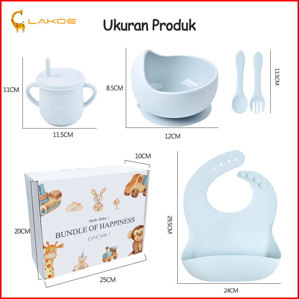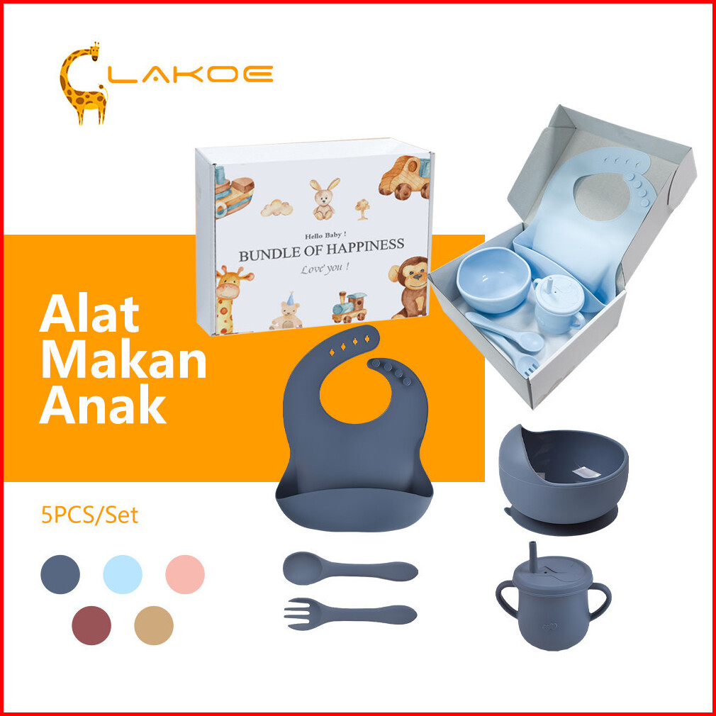 Lakoeofficialmall 5pcs Free Box Peralatan Makan Bayi Set Celemek Makan Bayi Mangkok Sendok Anak Training Cup Bayi Silico