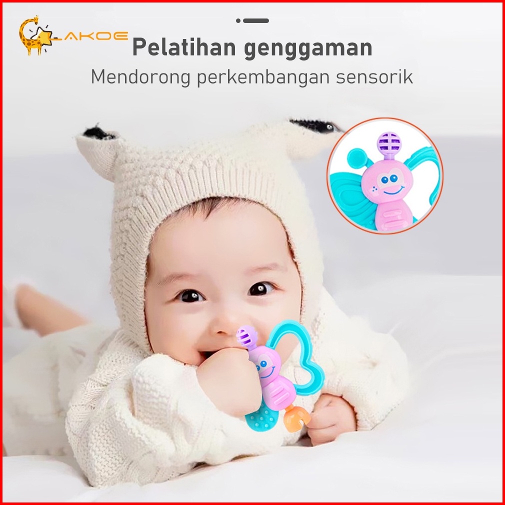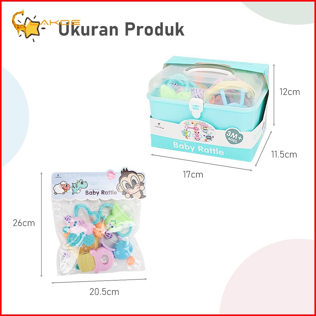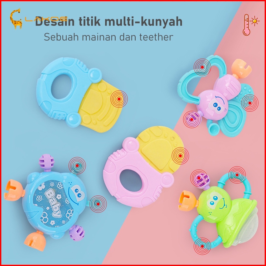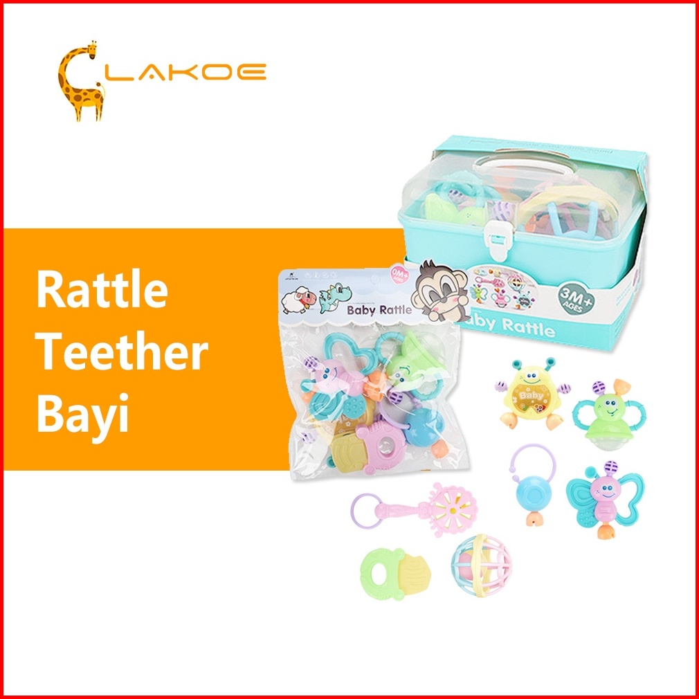 Lakoeofficialmall Mainan Kerincingan Bayi Set Mainan Gigitan Rattle Teether Bayi
