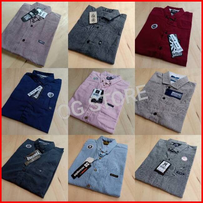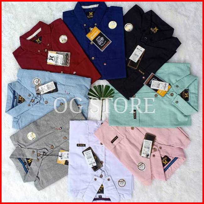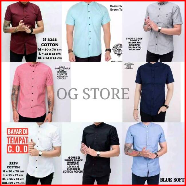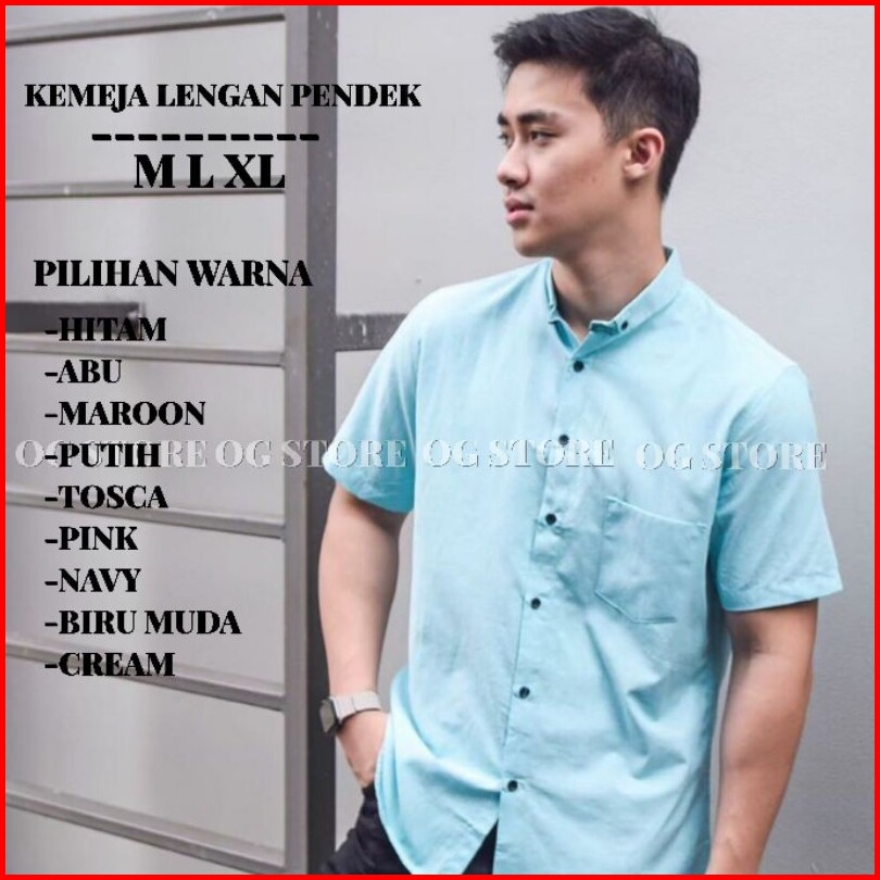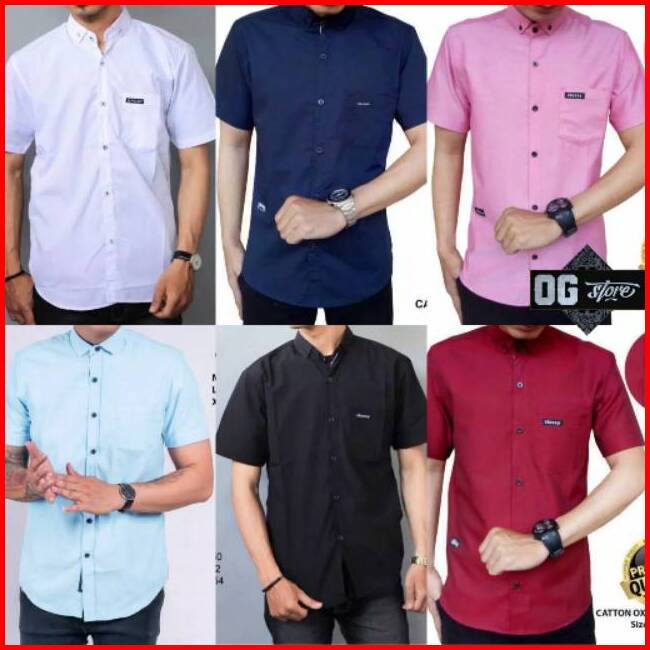 Kemeja Lengan Pendek Polos Pria Bahan Katun Oxford Navy Maroon Tosca Pink Hitam Abu Putih Casual