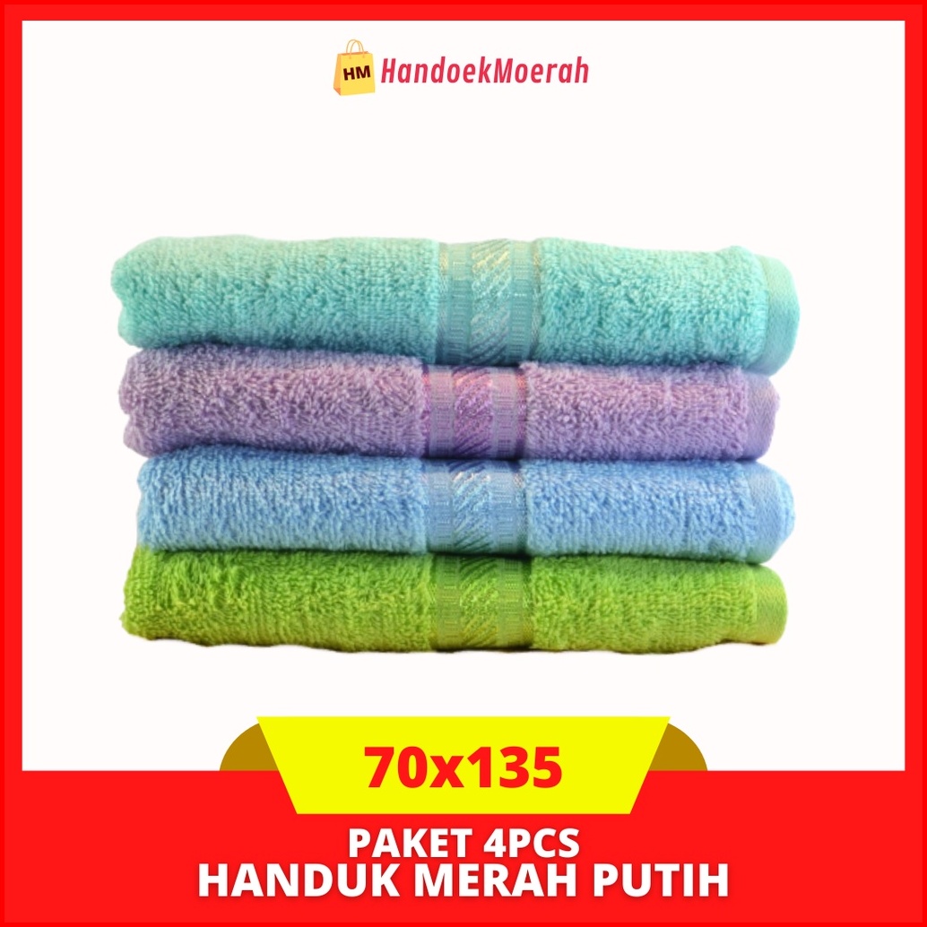 Paket Isi 4 Pcs Handuk Mandi Dewasa Towel Merah Putih Jumbo 70x135