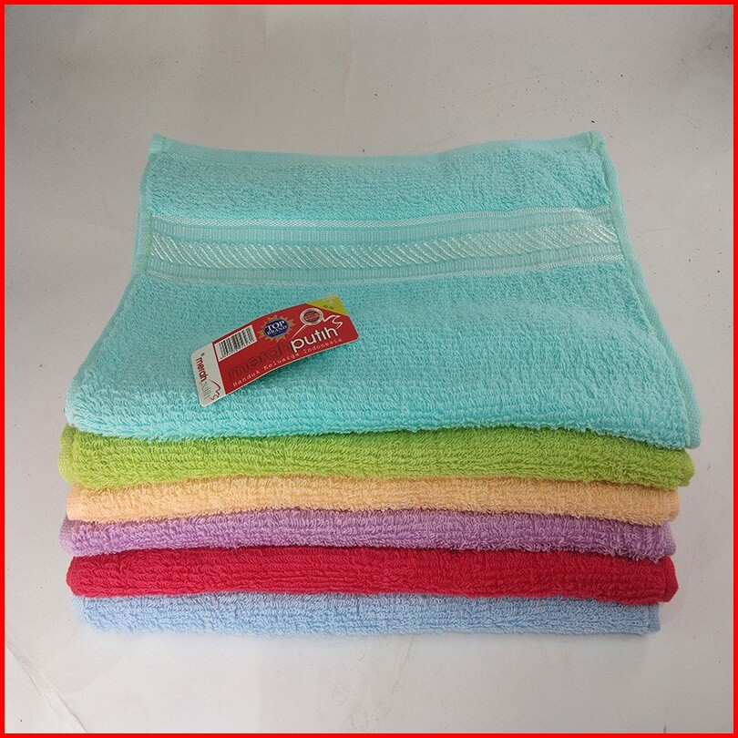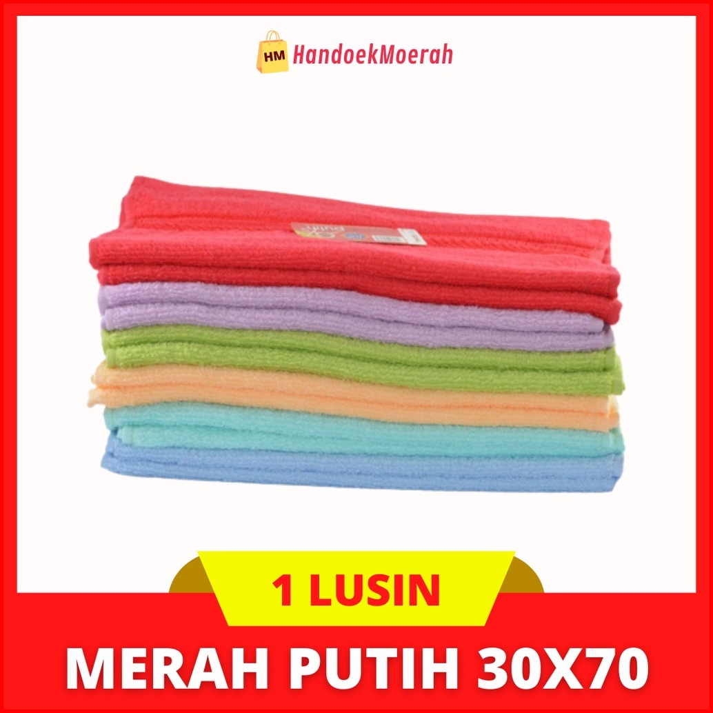 1 Lusin Handuk Muka Face Towel Sport Merah Putih Polos 30x70