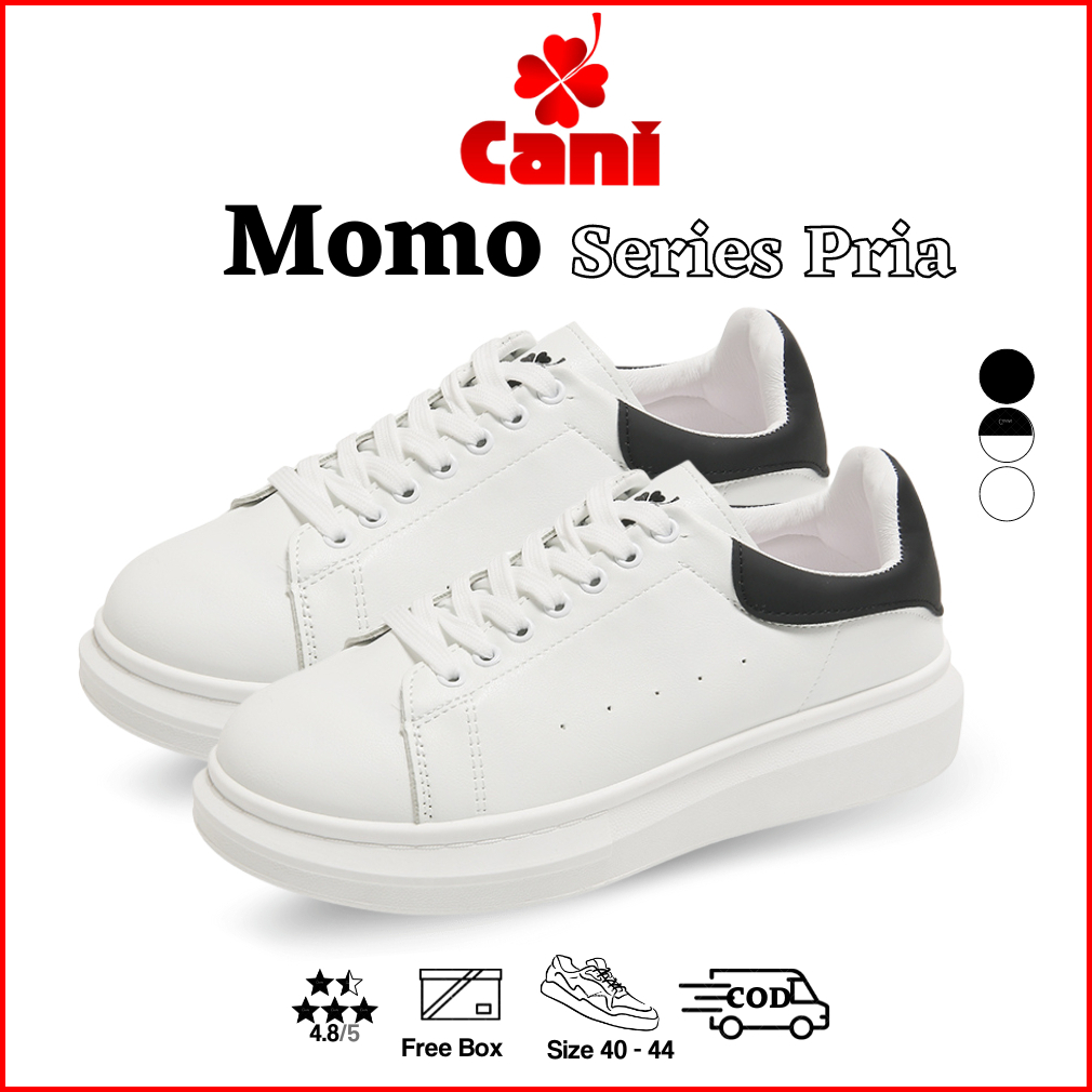 Cani Free Box Size 40 - 44 Momo Sepatu Pria Sneakers Full White Full Black Casual Import 8101