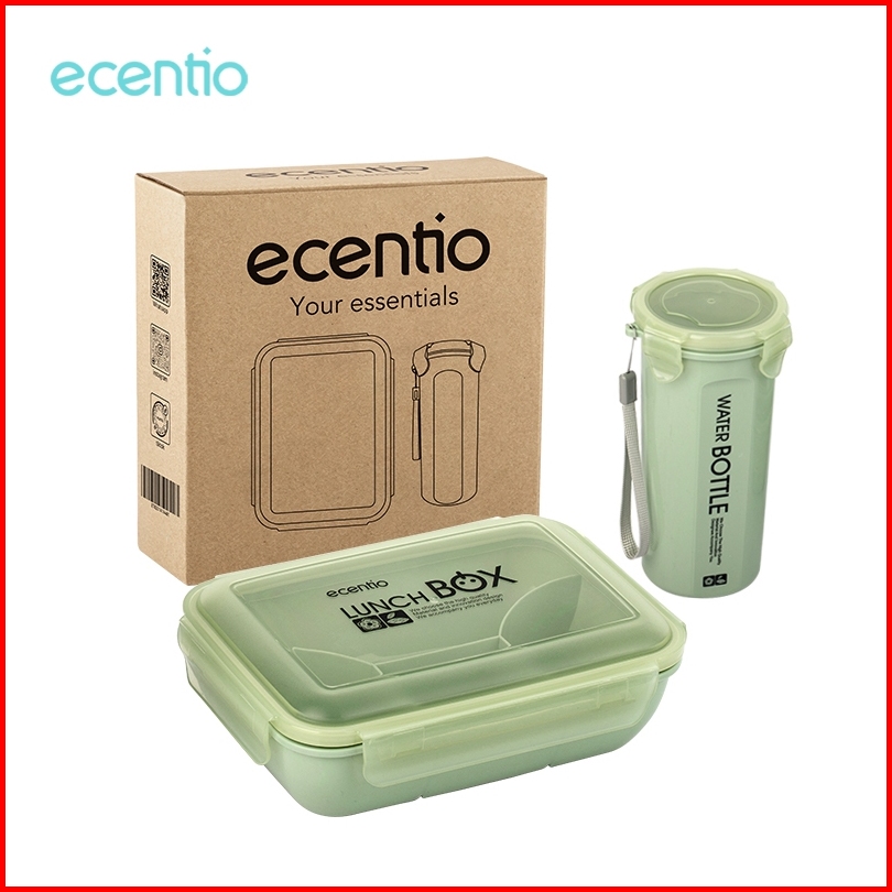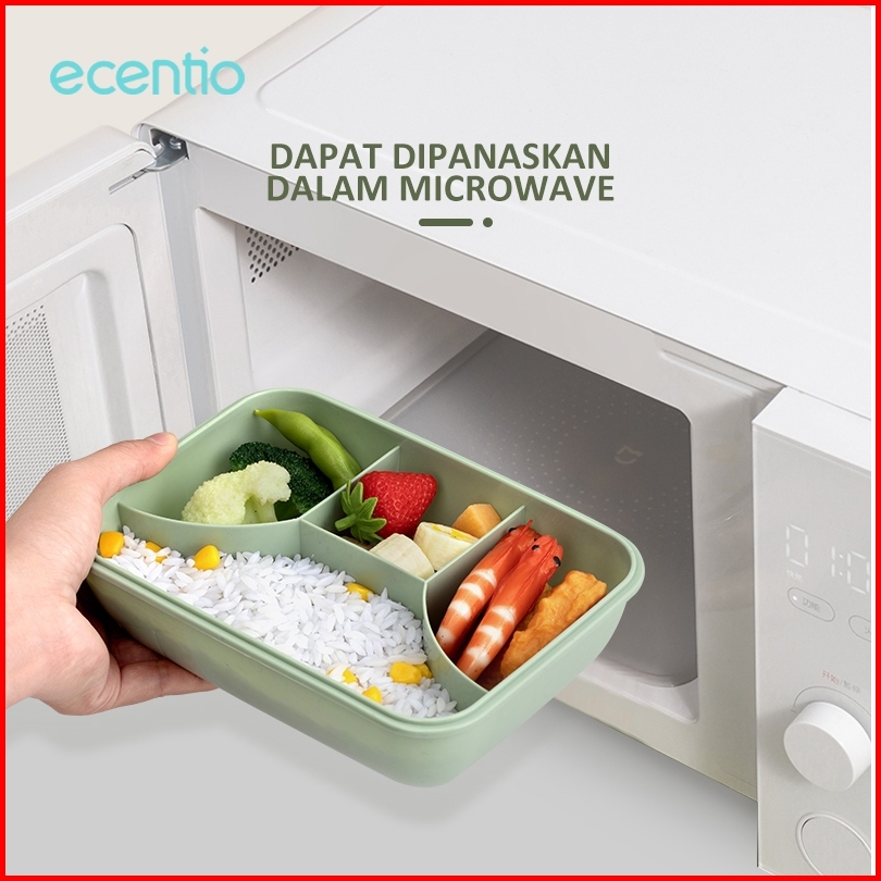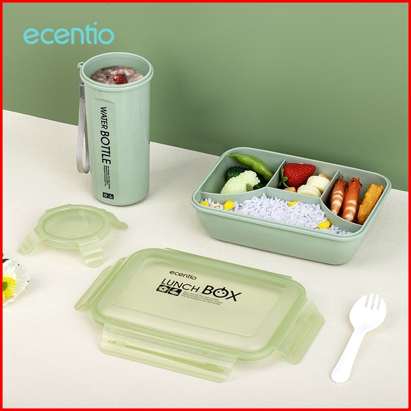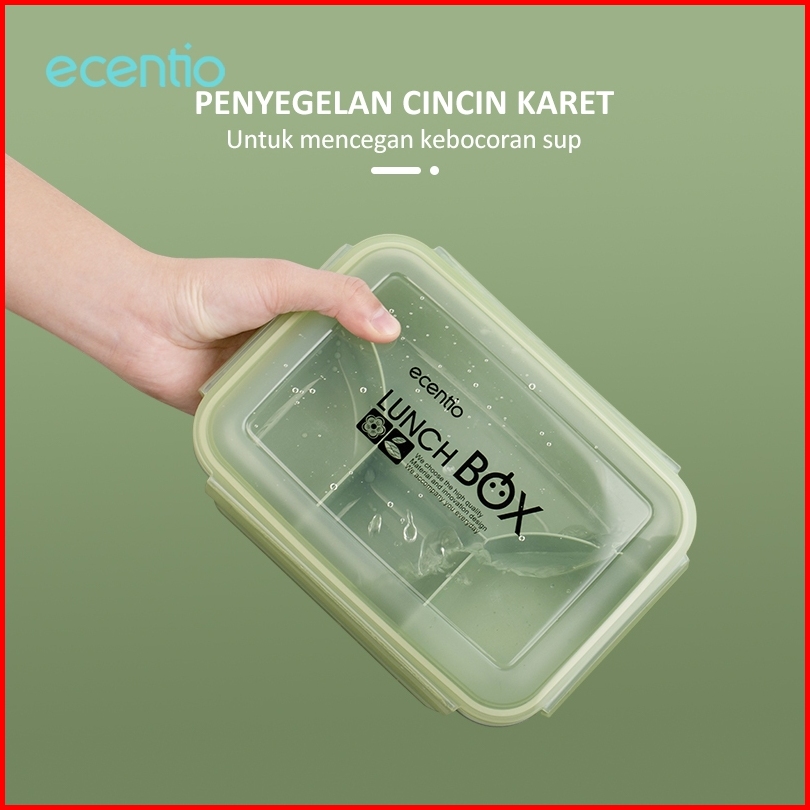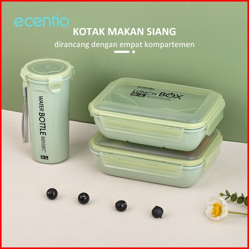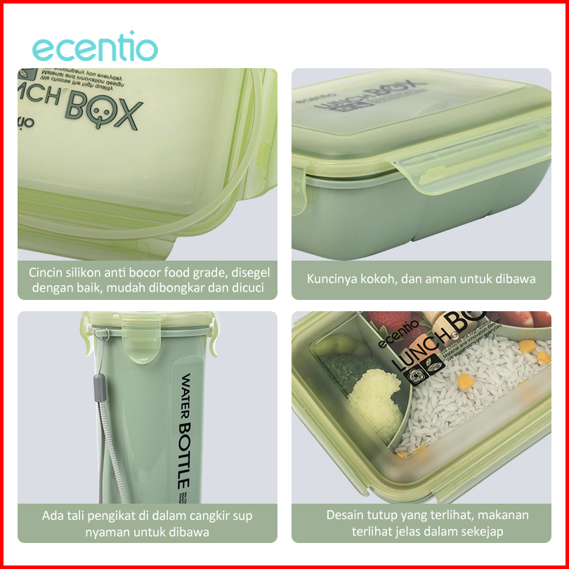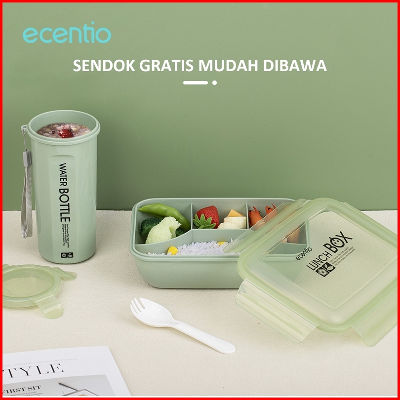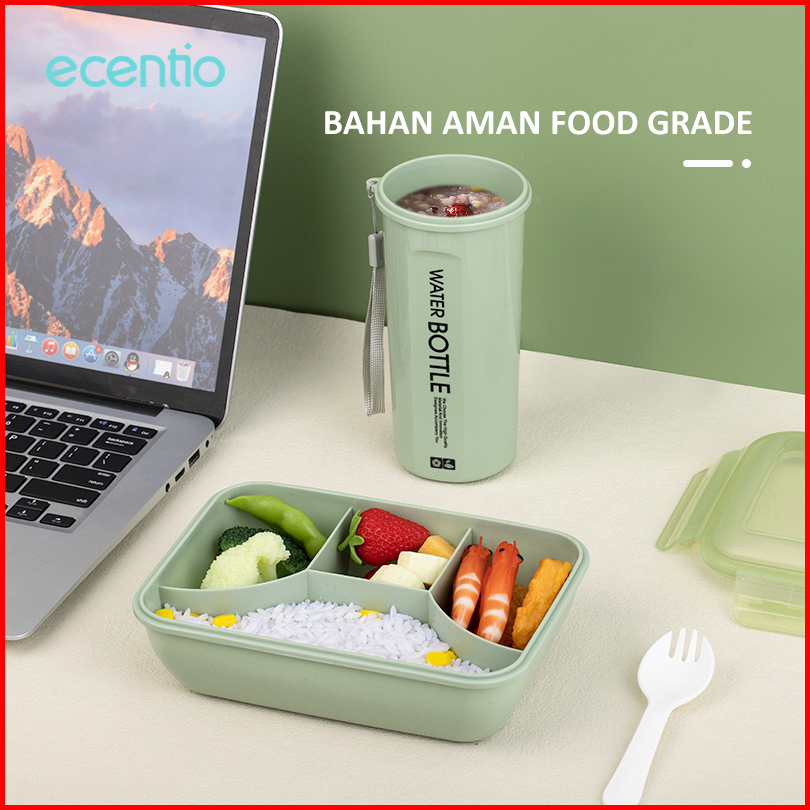 Ecentio Foodi Bekal Makan Set Anak Anti Tumpah 4 Sekat 1100ml Lunch Box Set Anak Cangkir 500ml Free Sendok Tempat Makana