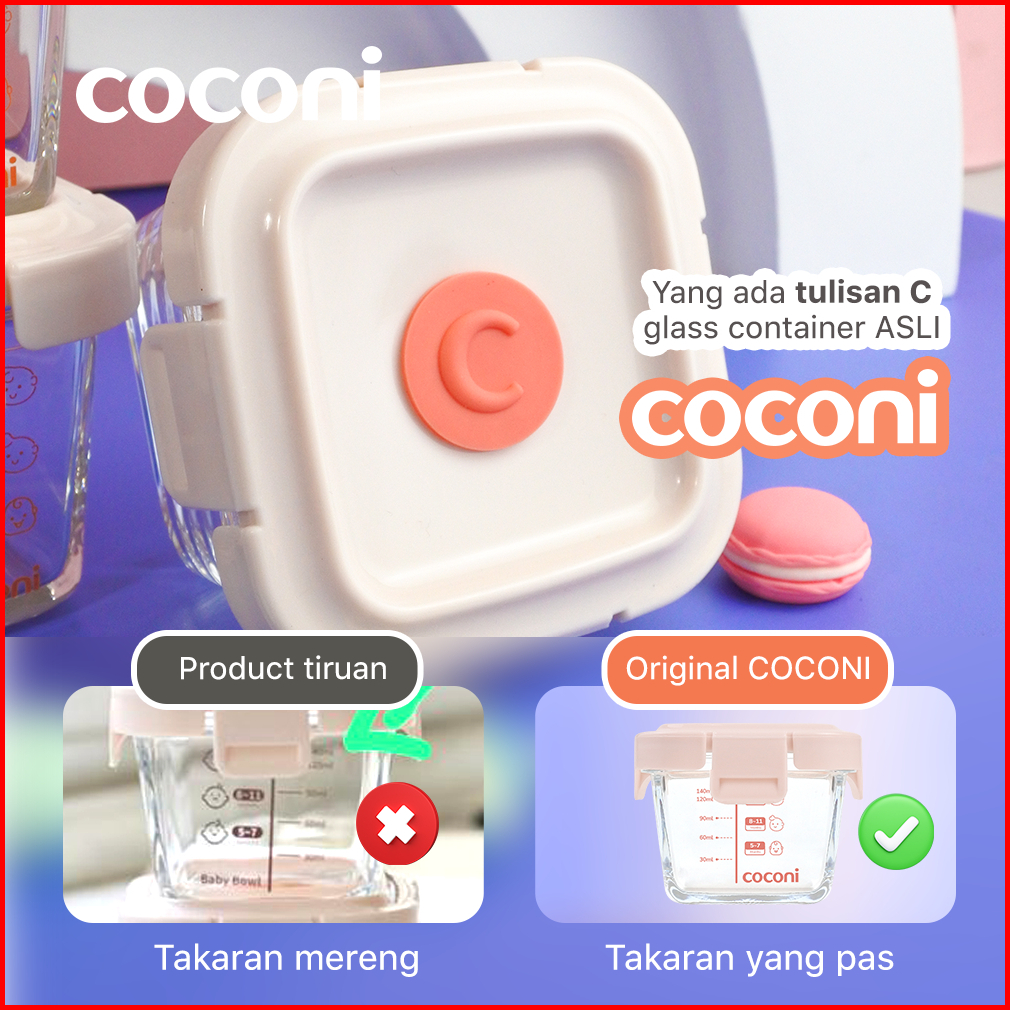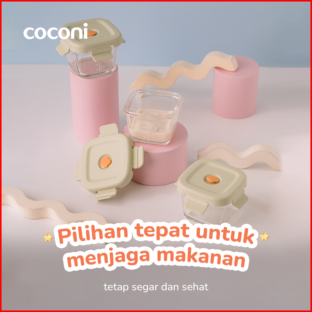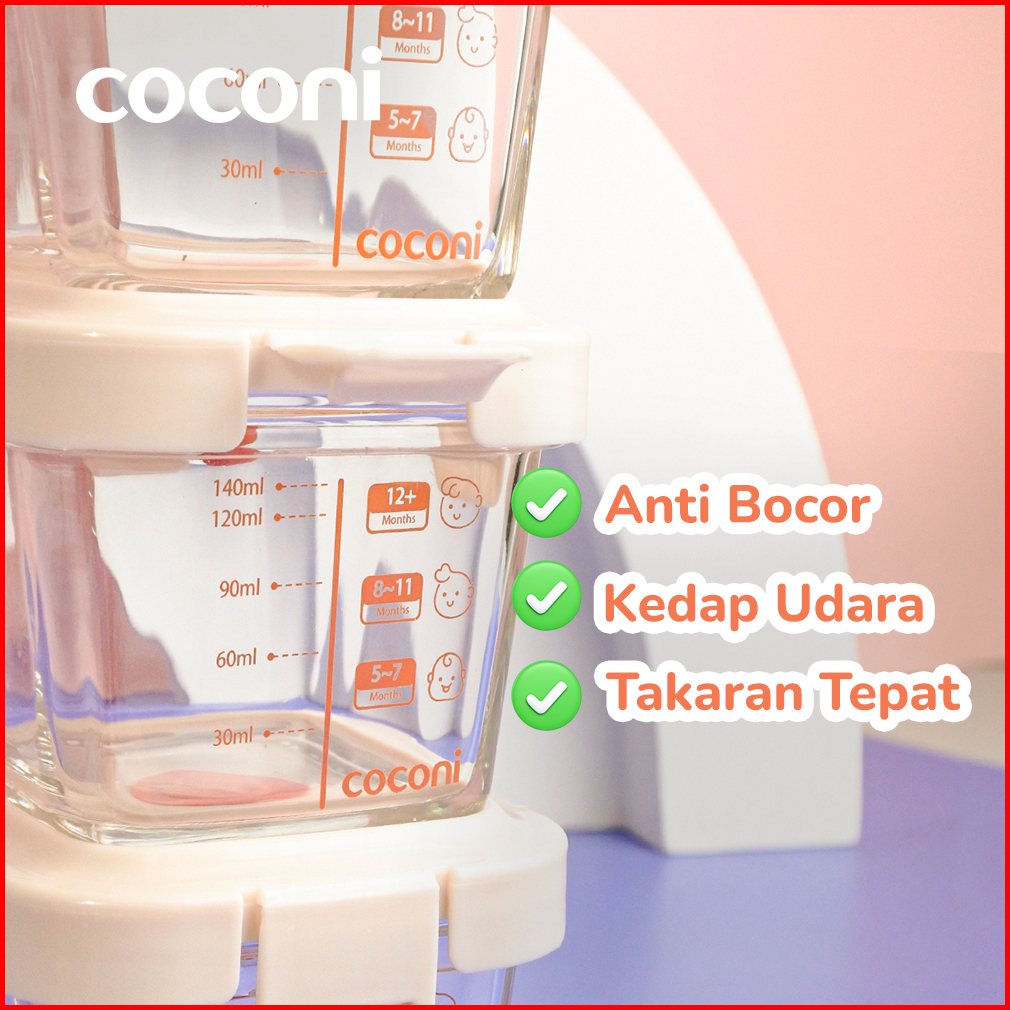 Coconi Baby Food Glass Container 3 Pcs X 160ml Wadah Penyimpanan Makan Kaca Anak Mpasi Kedap Udara Tahan Panas Isi 3 Pcs
