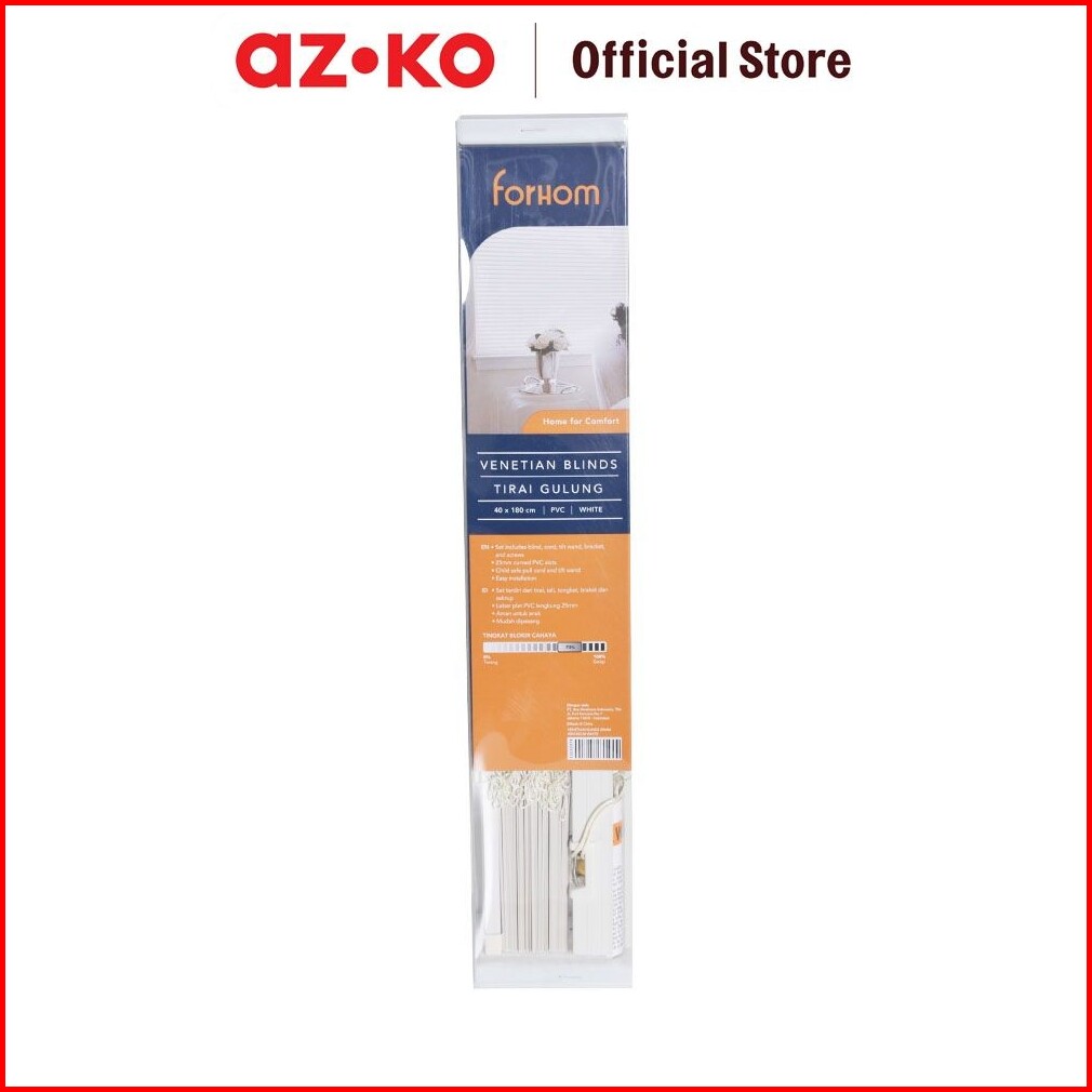 Azko Forhom 40x180 Cm Venetian Blinds 25 Mm - Putih Tirai Penutup Kerai Hordeng Venetian Penghalau Cahaya Aksesoris Jend