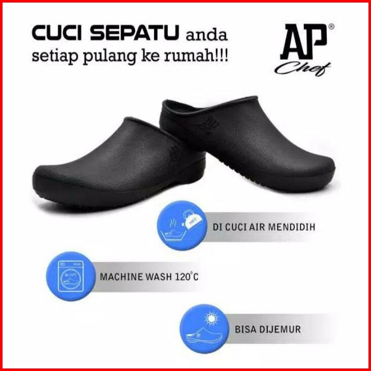 Sepatu Chef Sepatu Dapur Karet - Ap Chef 38-45 Black White - Ap Boots