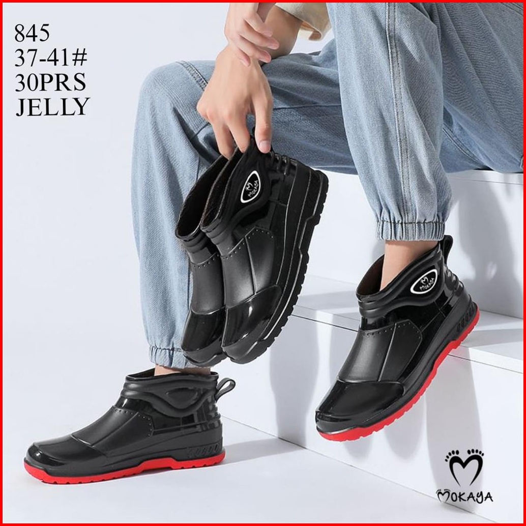 Sepatu Boot Pria Karet Pendek Motif Garis Mokaya Anti Slip Super Kece Trendy Size 40-44 845