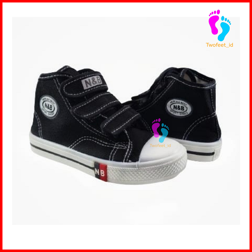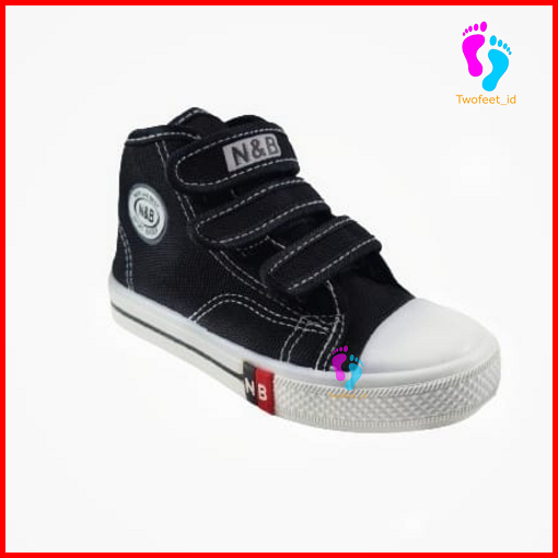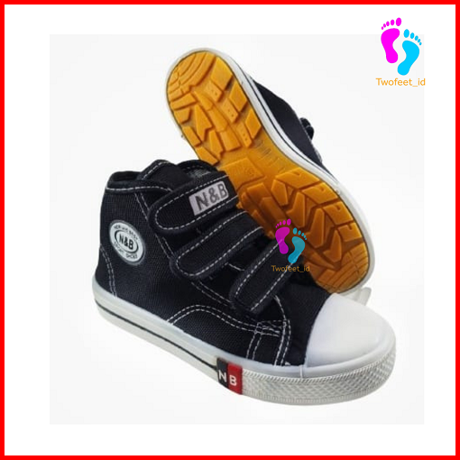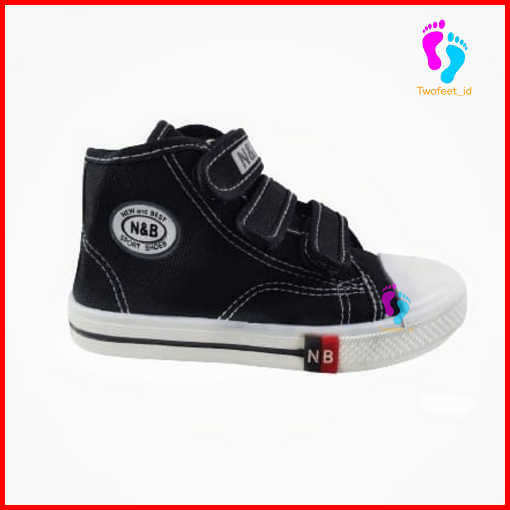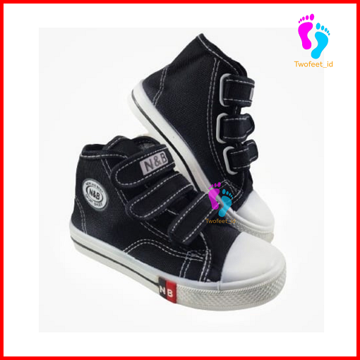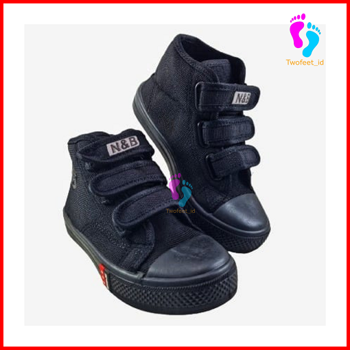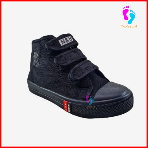 Sepatu Tempel Boot Hitam Putih Hitam Hitam Size 28 - 35 - Sepatu Sekolah Anak - Sepatu Formal - Sepatu N B Tempel Size 2