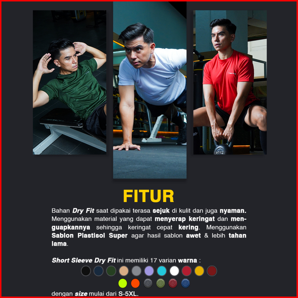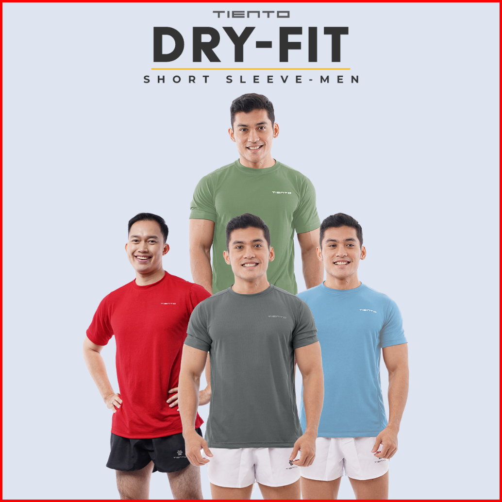 Tiento Kaos Running Dry Fit Baju Olahraga Lari Pria Gym Pakaian Sport Lengan Pendek Pria