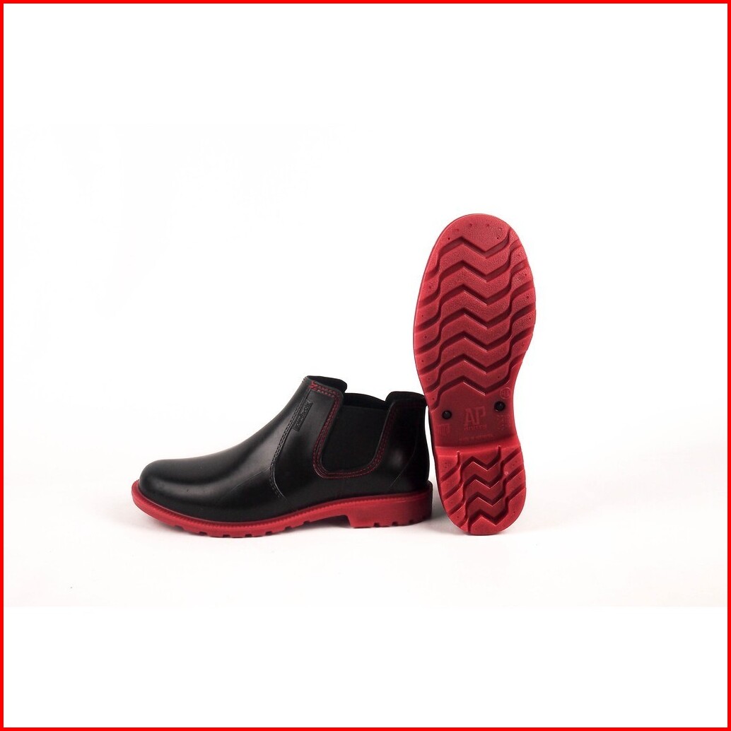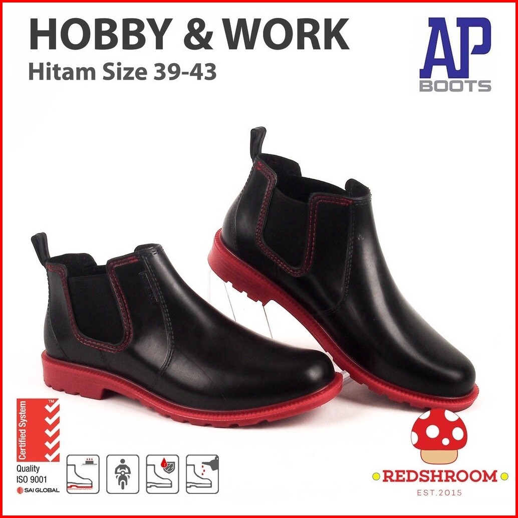 Sepatu Boot Pendek Hobby Work Ap Boots Hitam Merah Karet Lokal Anti Air Slip Sepeda Motor
