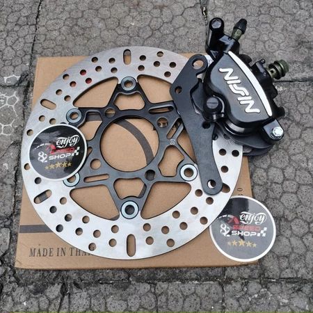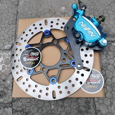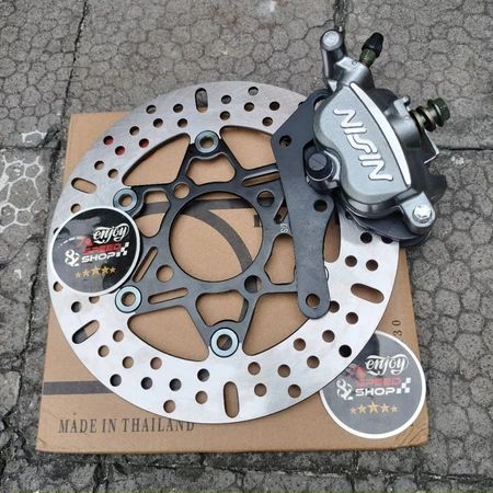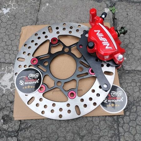 Kaliper Nissin Samurai 2p + Bracket Plat Besi + Disc 220 motor Beat Scopy Vario Lubang 4