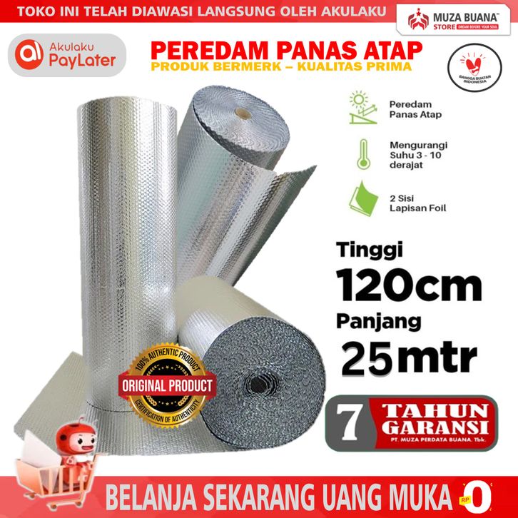 MUZA BUANA | Peredam Panas Atap / Bubble Insulation Foil Roll 120cm x 25meter x 4mm Bubble Foil Merk DKM+