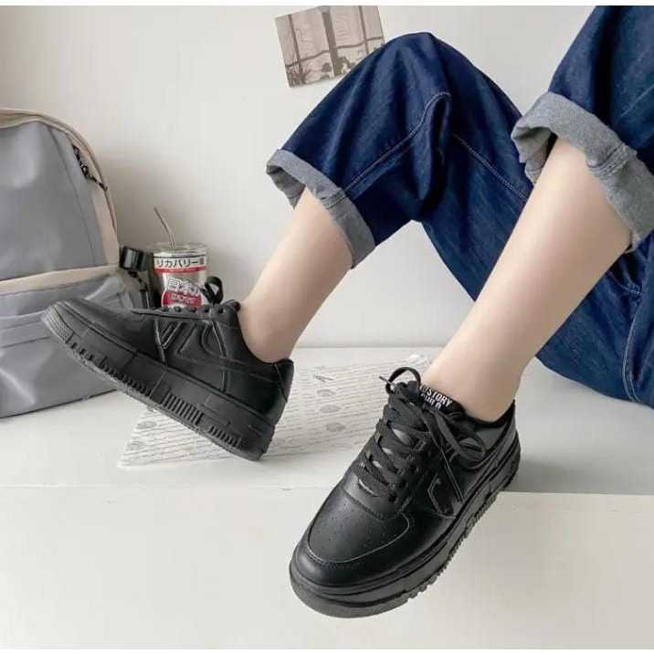 "NEW MACATI"SEPATU SNEAKERS WANITA SEPATU SEKOLAH CEWEK HITAM POLOS KOREAN STYLE/SEPATU OOTD WANITA