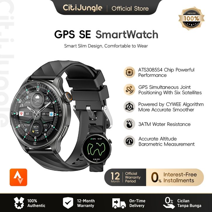Citijungle Smartwatch GPS SE | Layar AMOLED 1.43" | Tahan Air 3ATM | Bluetooth 5.3 | Kompas & Barometer | Jam Tangan