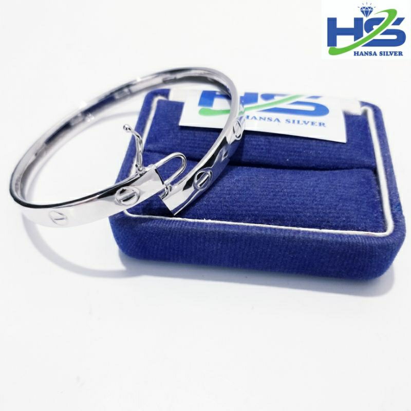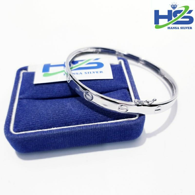 Gelang Perak Asli Silver 925 Lapis Ems Putih Model Bangle - Gelang Perak Wanita Anti Karat