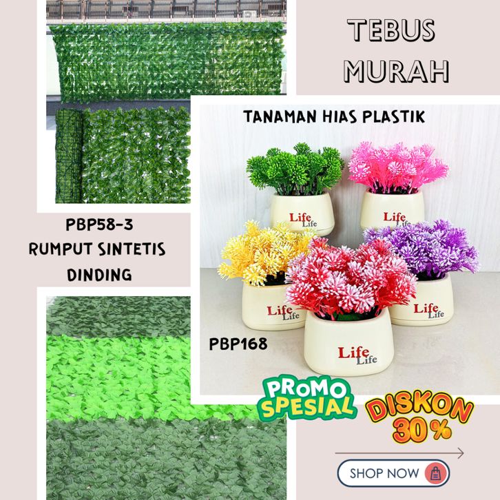 FREE ONGKIR Rumput Dinding Sintetis Dekorasi Dinding Daun Rambat Pagar 3 Meter Tanaman Plastik KoalaStore PBP58-3