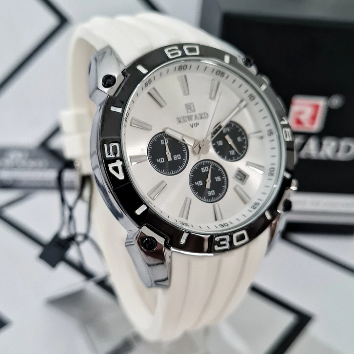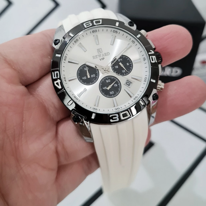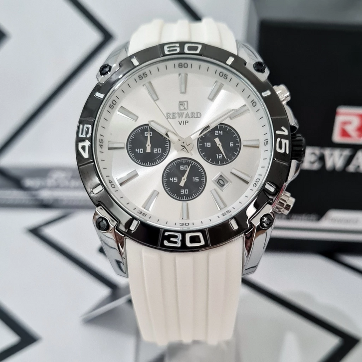 REWARD Troop Jam Tangan Pria Original Chronograph Aktif Analog Quartz Baterai Putih Rubber
