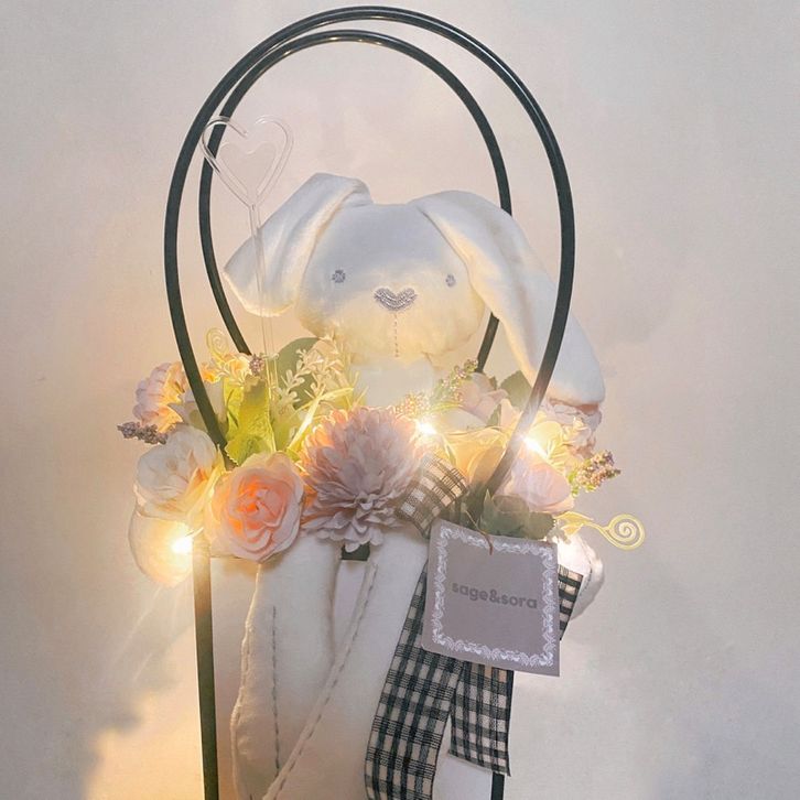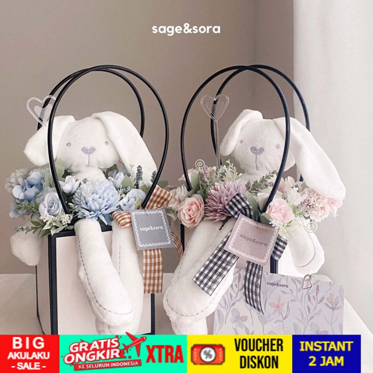 FREE ONGKIR sage&sora BISA KIRIM HARI INI - BUNNY BLOOM BOX - BUNNY BOUQUET BUNGA BONEKA KELINCI - BUNGA ARTIFICIAL