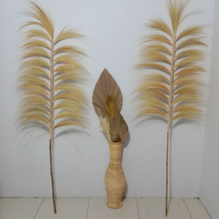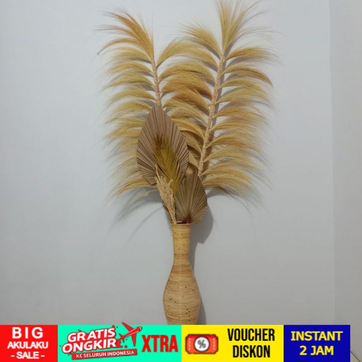 Paket murah bunga kering dan vas rotan tinggi 70 cm KUALITAS IMPORT