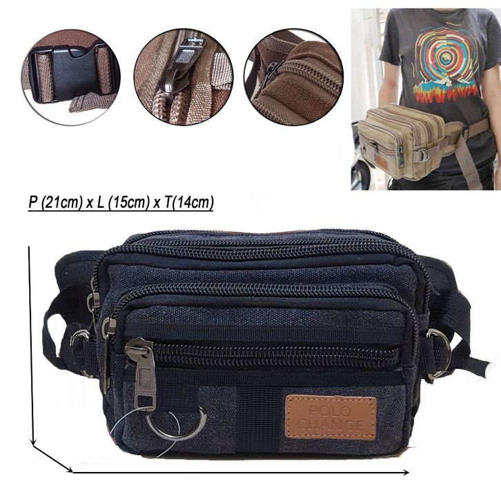 Waist Bag Pria Dewasa Tas Pinggang Pria Waistbag Import Kanvas Polo Change #8911 Tas Selempang Sling Bag Tas Bahu Pria