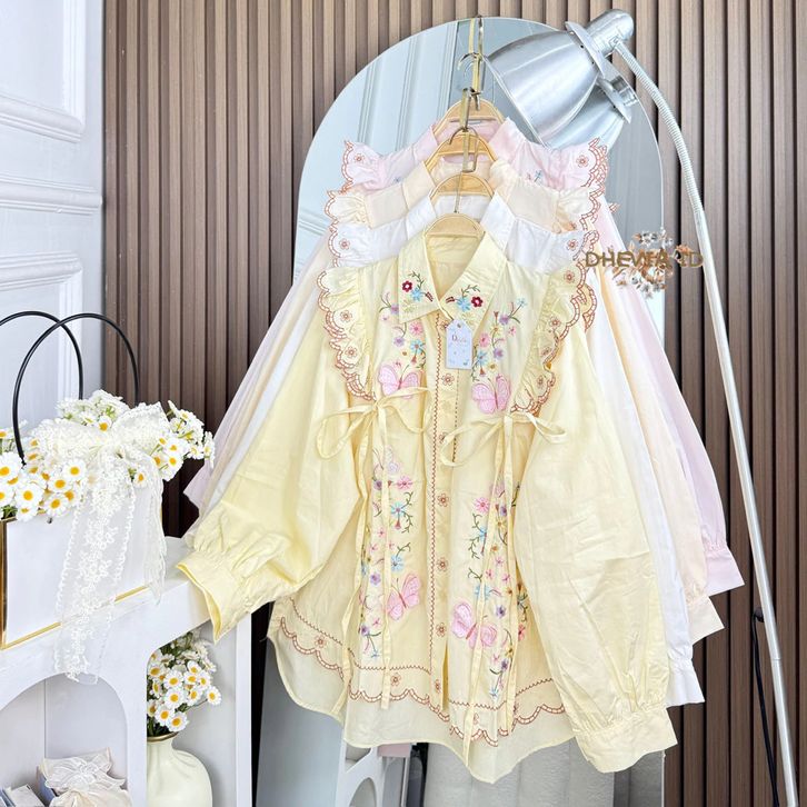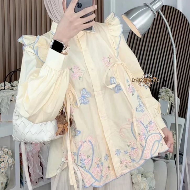 BLOUSE WANITA RUFFLE POPLINE MOTIF BORDIR TERBARU BLOUSE WANITA POPLINE MOTIF BORDIR TERLARIS