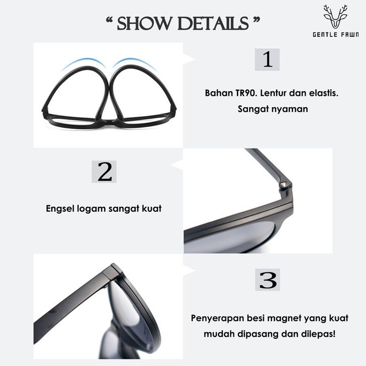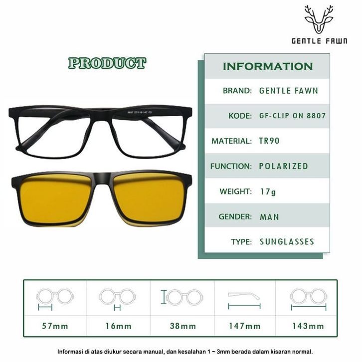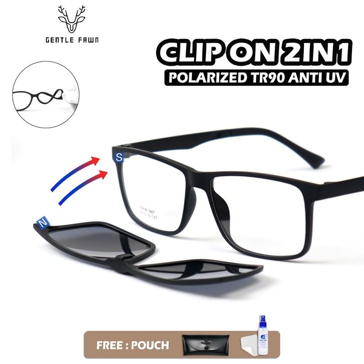 KACAMATA CLIP ON FREE 1 LENSA POLARIZED 2 IN 1 TR90 ANTI UV ANTI SILAU SQUARE KOTAK STYLE BISA MINUS