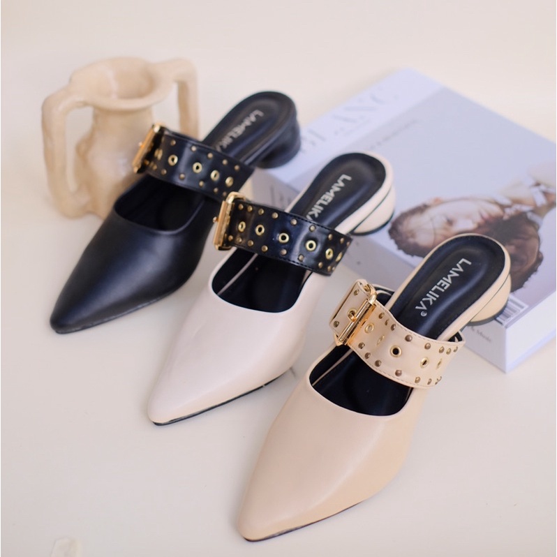 Sepatu Hak Mules Wanita/Sandal Slop Mules Wanita Freya/LAMELIKA Sepatu Mules Wanita Freya 3 Cm