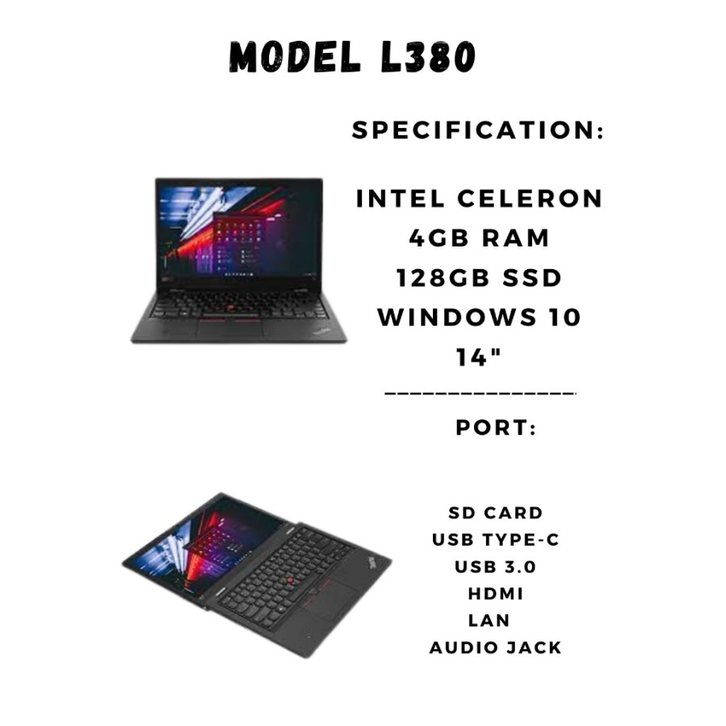 Laptop Lenovo ThinkPad L380 celeron Ram 16GB SSD 256GB - 4GB/128GB free mouse//tas