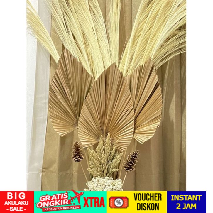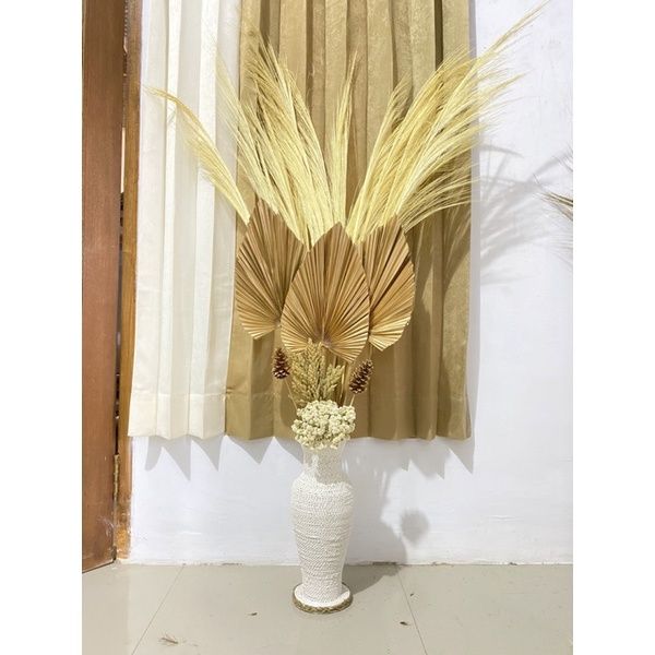 FREE ONGKIR Paket Dekorasi Rustic Daun Palem Kering tanpa Pot Bunga kering Pampas Lokal Rayung Jawan Edelweis KUALITAS