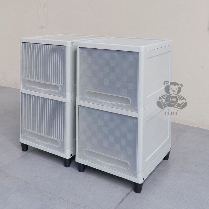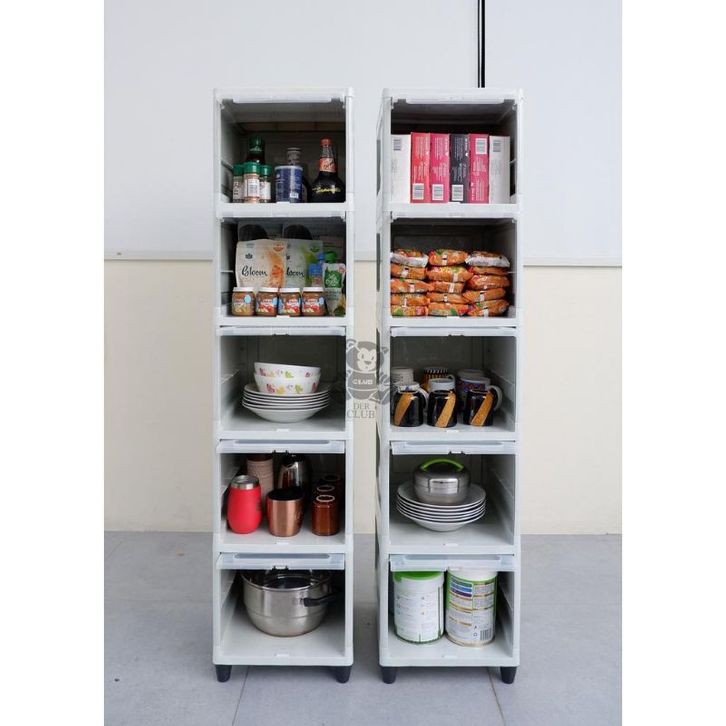 Lemari Rak Piring Plastik 5 Susun Rak Plastik Serbaguna Pintu Transparan Flip Rak Dapur Minimalis