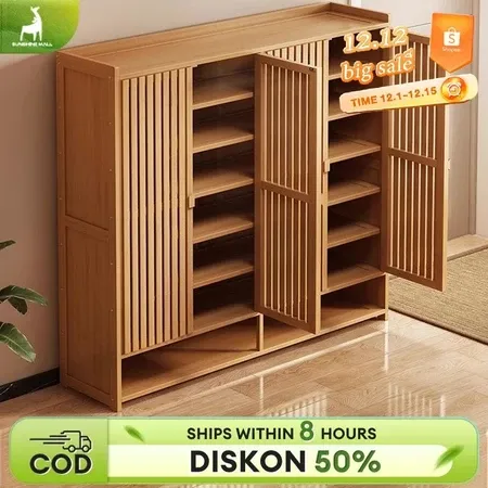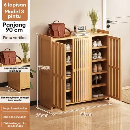 [Star] Rak Sepatu Aesthetic Lemari Sepatu Susun Tertutup Rak Sepatu Kayu Serbaguna Kabinet Sepatu