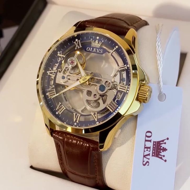 OLEVS Jam Tangan Pria Anti Air Original Automatic Mechanical Luminous Fashion Luxury Kulit Tali Asli Men Watch Model 666