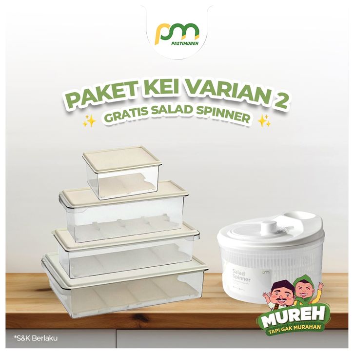 PASTIMUREH | PAKET KEI - Kontainer kulkas Varian 2 free salad spinner
