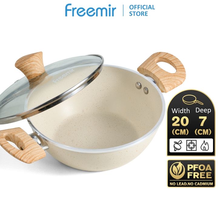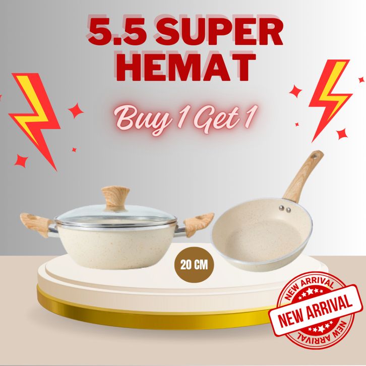 LIVE SPECIAL BUY 1 GET 1 + BONUS SPATULA freemir Wajan Panci Beige 20 cm Kedalaman 7 cm Dengan Tutup & Frypan 20 cm Bah