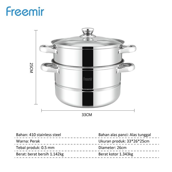 New Launch freemir Panci Kukus Panci Rebus Panci Steamer 2 Tingkat Pengukus / Alat Kukus 2 Layer Panci Kukusan Stainles