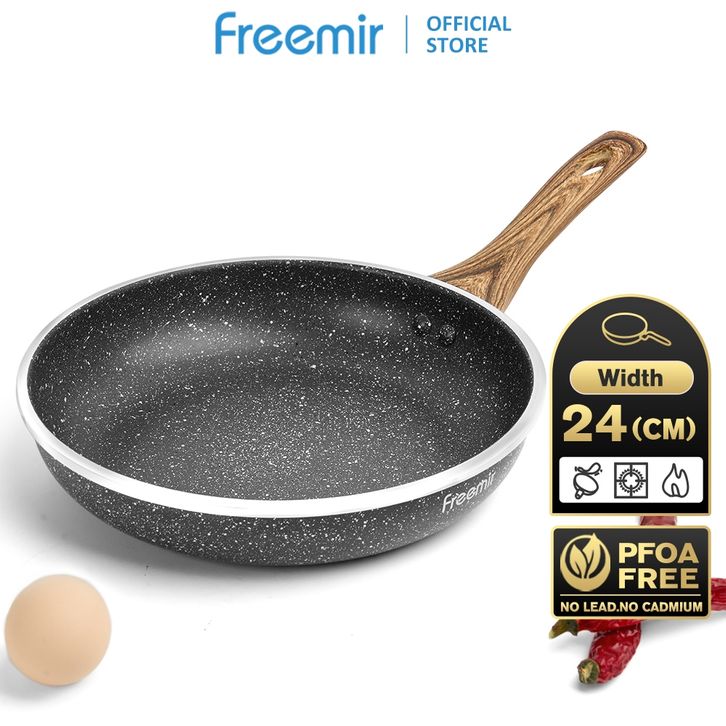 LIVE SPECIAL freemir Deep Wood Series Wajan Hitam 24cm Penggorengan Anti Lengket Gagang Kayu