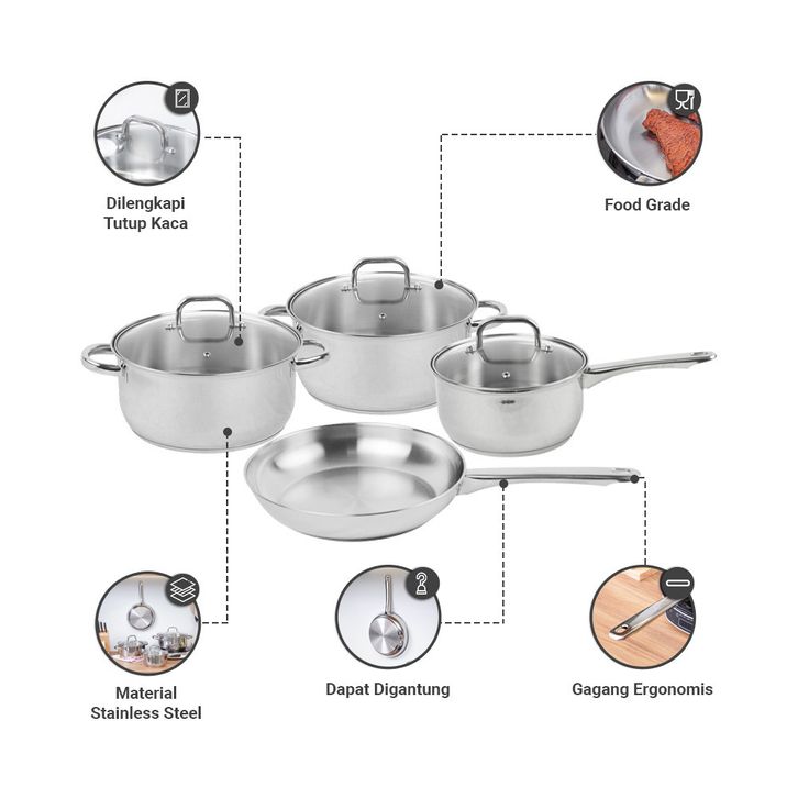 Informa Cooking Color Set 7 Pcs Leon Perlengkapan Masak Cookware Set Wajan Casserole Saucepan Panci Peralatan Masak Kit
