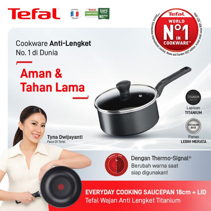 Tefal Everyday Cooking Saucepan / Panci 18 cm + Lid Panci Anti Lengket Dengan Tutup