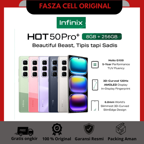 Handphone Infinix Hot 50 Pro+ 8/256GB - Up to 16GB Extended RAM - Helio G100 - 6.78 inch 3D Curved 120Hz Amoled - 50MP -