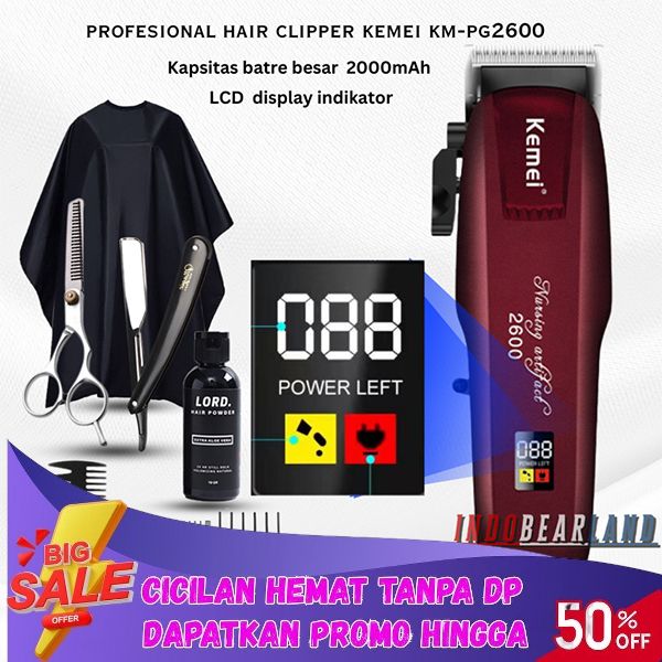 [Mall] PROFESSIONAL BARBERS HAIR CLIPPER CORDLESS KEMEI PG2600 LCD DISPLAY ALAT CUKUR KAPASITAS BESAR TERLENGKAP