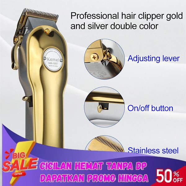 [Mall] HAIR CLIPPER CUKURAN RAMBUT KEMEI KM 1987 GOLD SILVER ALAT MESIN CUKUR RAMBUT FULL METAL CAS