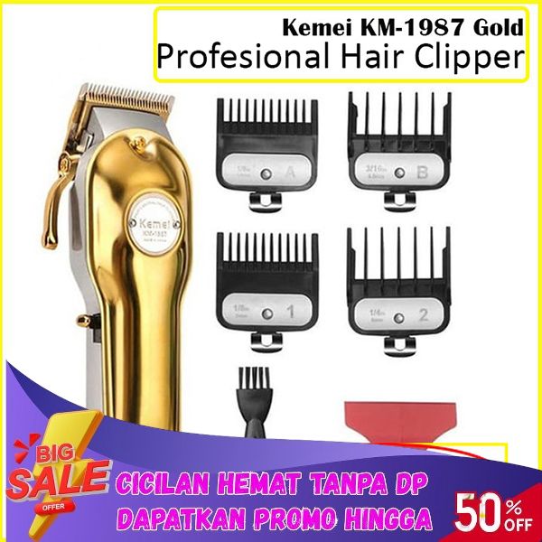 [Mall] KEMEI 1987 GOLD MESIN CUKUR RAMBUT HAIR CLIPPER ALAT PANGKAS DAN POTONG RAMBUT