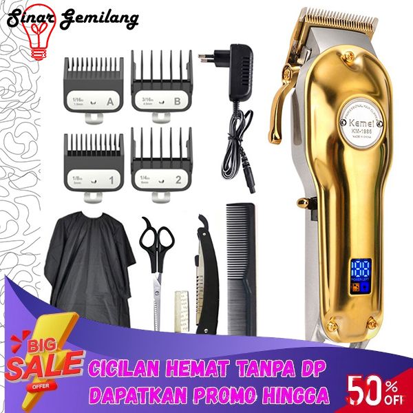 [Mall] PAKET ALAT CUKUR RAMBUT CAS KEMEI KM-1986 SILVER/GOLD HAIR CLIPPER BARBERSHOP MESIN POTONG RAMBUT
