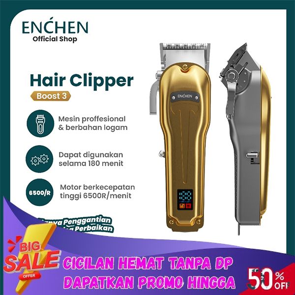 [Mall] ENCHEN Alat Cukur Rambut Boost 3 Gold Hair Clipper Electric Metal Design