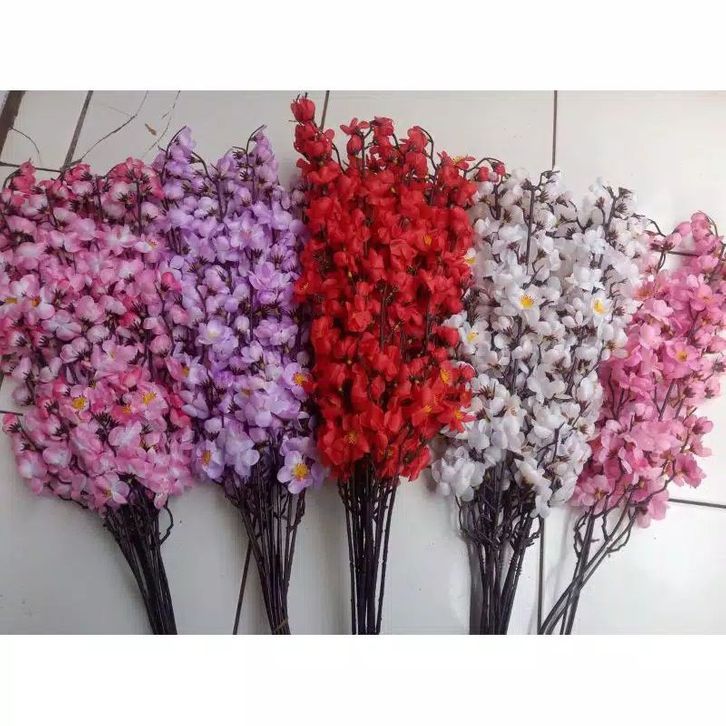 FREE ONGKIR Bunga Palsu Sakura Harga per Satu1 Lusin Imitasi Plastik dekorasi Taman Rumah Cafe H0Tel dll. KUALITAS