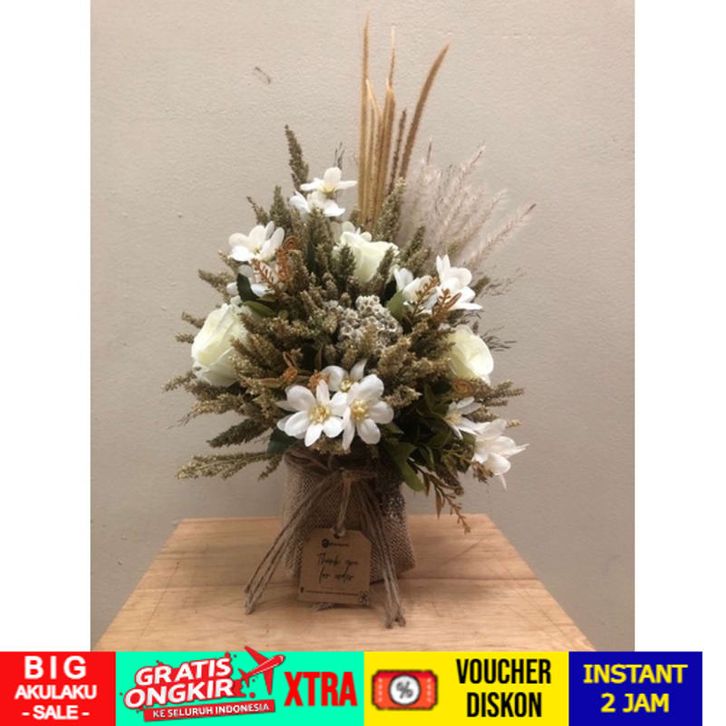 FREE ONGKIR RAISYA BLOOMBOX DRIED FLOWER RANGKAIAN BUNGA KERING (RAISYA WHITE) KUALITAS IMPORT