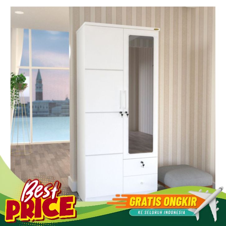 [Mall] TERMURAH LEMARI BAJU 2 PINTU 2 LACI FULL PUTIH KACA PANJANG - BANDUNG AREA SAJA