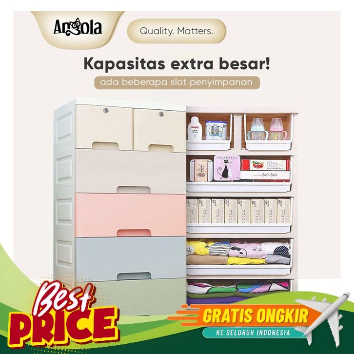 [Mall] ANGOLA LEMARI PLASTIK PAKAIAN 5 TINGKAT C68 LACI SUSUN STORAGE CABINET PLASTIK RAK SUSUN PENYIMPANAN BAJU