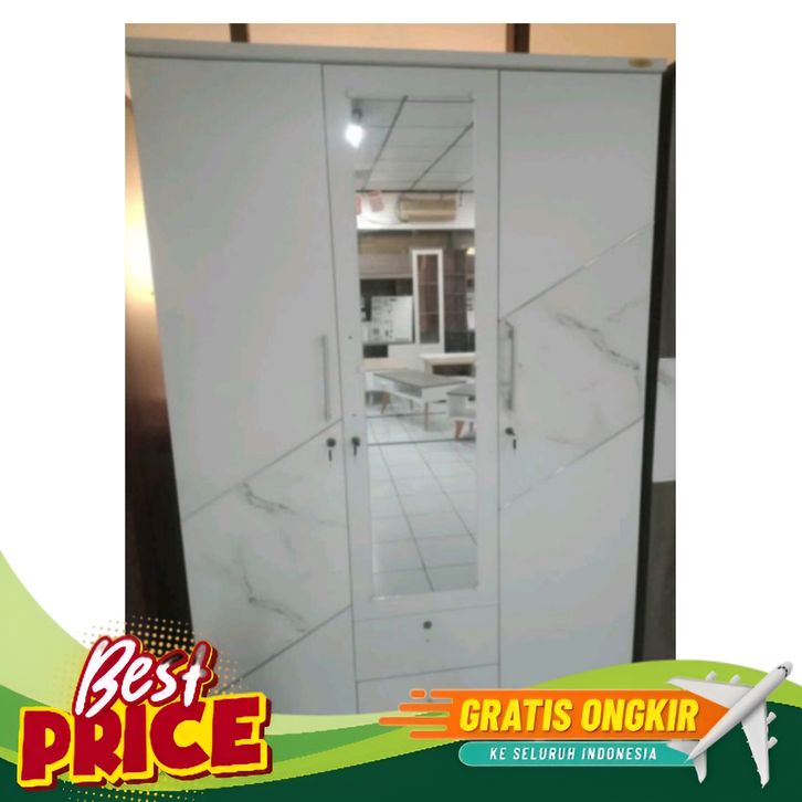[Mall] LEMARI PAKAIAN 3 PINTU FULL PUTIH NEW