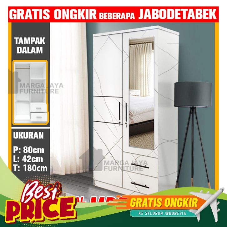 [Mall] LEMARI PAKAIAN 2 PINTU TARIK MINIMALIS DENGAN CERMIN PANJANG BY LUNAR LPT 026